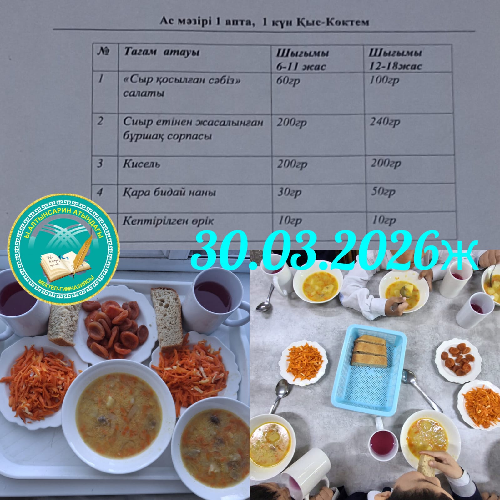 🏫«Мектепке дейінгі шағын орталығы бар Ыбырай Алтынсарин атындағы мектеп-гимназия»КММ. 30.03.2026ж. Жалпыға бірдей міндетті білім беру қоры есебінен тамақтанған оқушылар.