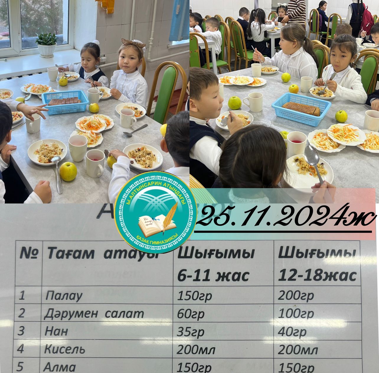 “Ы. Алтынсарин атындағы мектеп жасына дейінгі шағын орталығы бар қазақ гимназиясы”КММ Жалпыға бірдей міндетті білім беру қоры есебінен 25.11.2024 ж тамақтанған оқушылар.