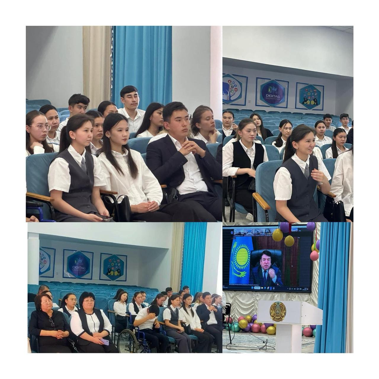 Қазақстан Республикасы Оқу-ағарту министрі Ғани Бейсембаев “ Алтын белгі” белгісіне үміткерлермен онлайн кездесу өткізді. Әр өңірдің үміткерлерінің пікірлері мен ұсыныстарын тыңдап, сұрақтарға жауап берді. Дәстүрге айналған бұл кездесуге гимназияның түлектері де қатысты. Әр түлекке ой салатын әсерлі басқосу болды.
