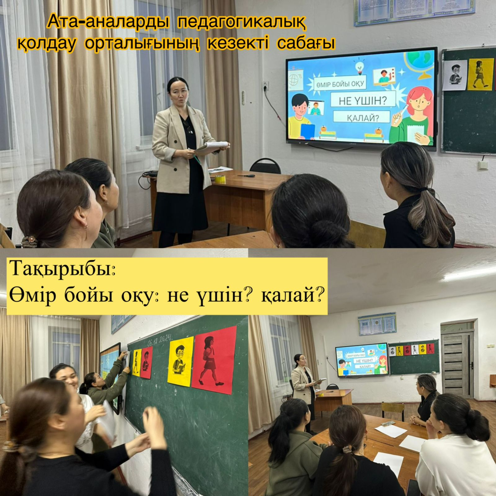 Ата-аналарды педагогикалық қолдау орталығының кезекті 9-11 сынып ата-аналары үшін өткізілді.Сабақтың тақырыбы: “Өмір бойы оқу: не үшін? қалай?”