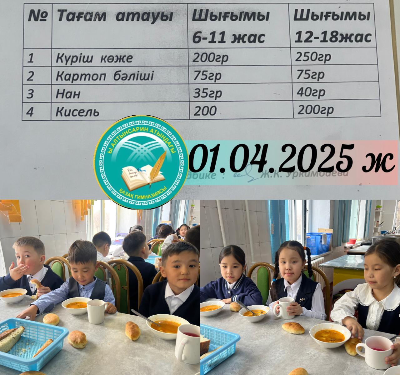 “Мектепке дейінгі шағын орталығы бар Ыбырай Алтынсарин атындағы мектеп -гимназия»КММ Жалпыға бірдей міндетті білім беру қоры есебінен 01.04.2025 ж тамақтанған оқушылар.