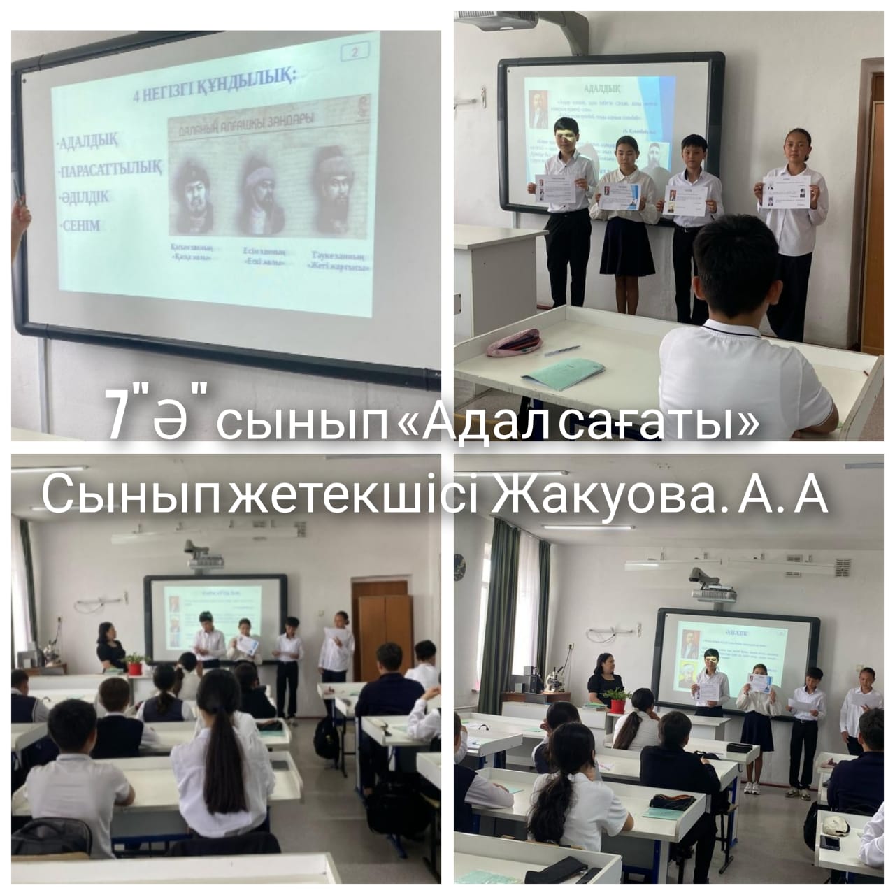 28 сәуір күні “Заң және тәртіп”идеологиясы аясында 2025 жылғы жастар арасында академиялық адалдықты насихаттау жоспарына сәйкес адалдық, шыншылдық, әділдік мәселесіне арналған 1-11 сыныптар арасында “Адалдық сағаты” өтті.
