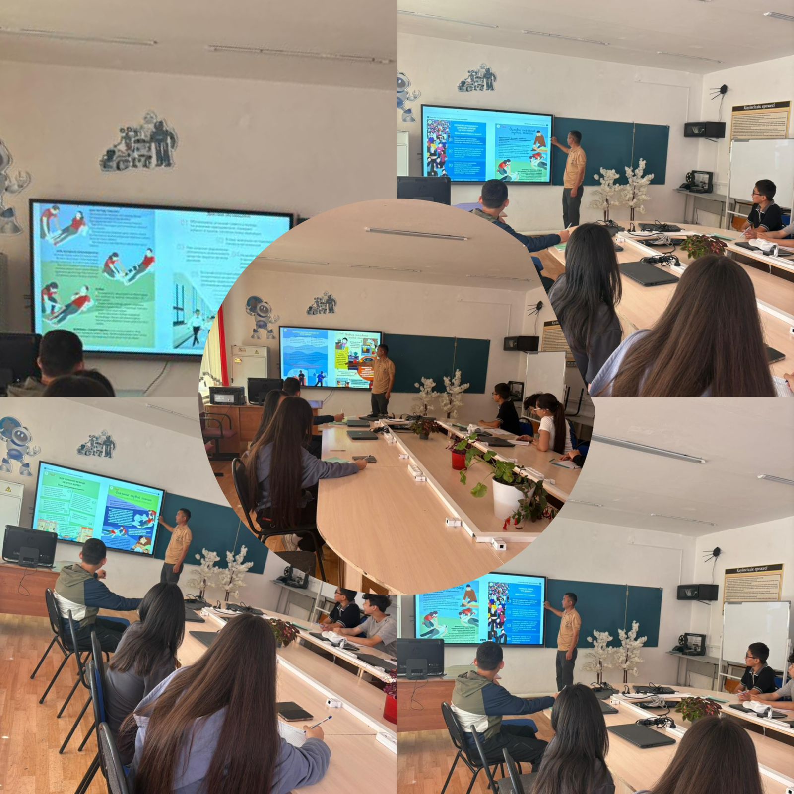 «Мектепке дейінгі шағын орталығы бар Ыбырай Алтынсарин атындағы мектеп-гимназия»КММ.Халықаралық балаларды қорғау күнін мерекелеуге арналған ауқымды іс-шаралар жоспары негізінде “Бала қауіпсіздігі - басты орында” тақырыптық іс-шара аясында АӘД пәні мұғалімі Ермұқанұлы Манат 5-10 сыныптарымен судағы қауіпсіздігі, көппәтерлі үйлердегі терезесінен қауіпсіздігін сақтау туралы түсіндіру жұмысын жүргізді.