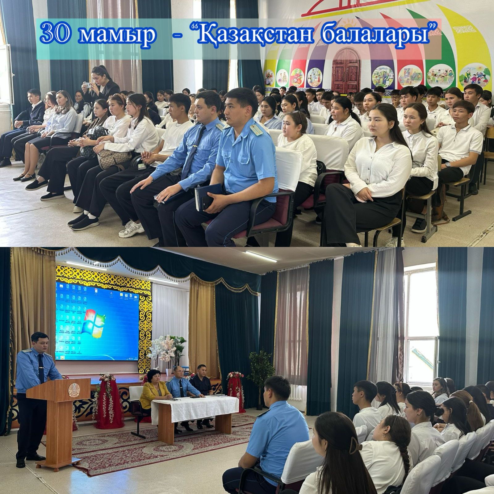 «Мектепке дейінгі шағын орталығы бар Ыбырай Алтынсарин атындағы мектеп-гимназия»КММ.Халықаралық балаларды қорғау күніне іс-шара жрспары негізінде 30 мамыр - “Қазақстан балалары” тақырыптық күні орай 8-10 сынып оқушыларымен Алакөл аудандық прокуратура және полиция бөлімі басшылары балалар қауіпсіздігін алу мақсатында ақпараттық-түсіндірме жұмыстарын жүргізді.