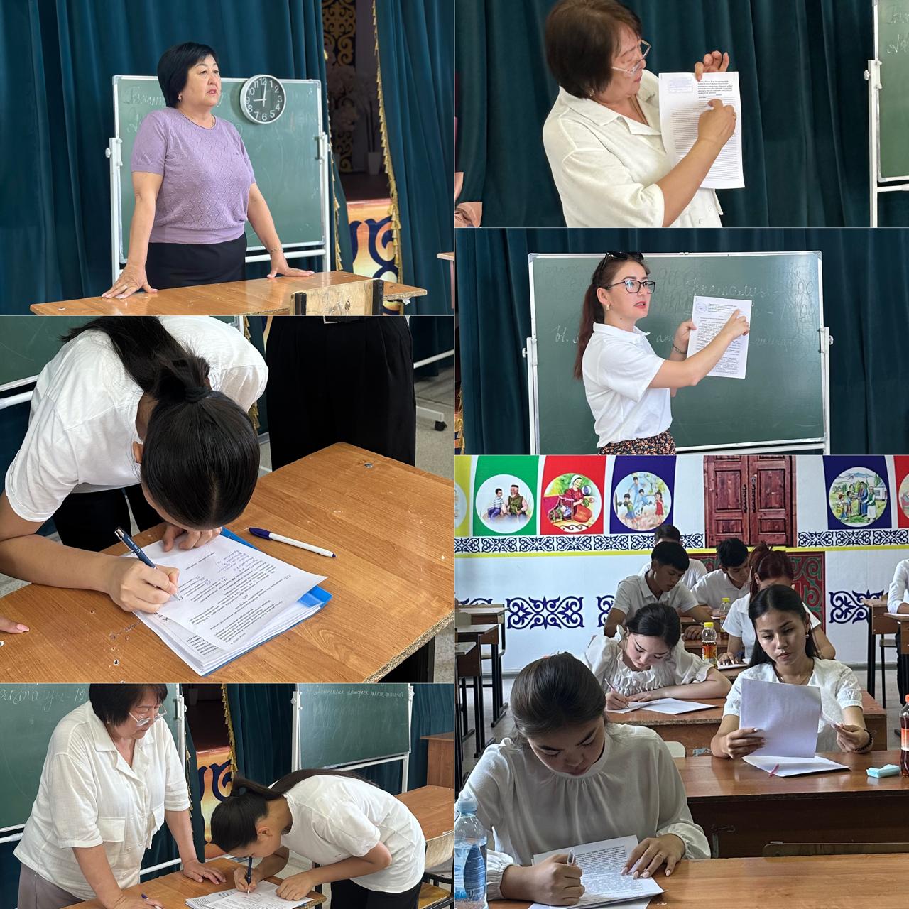 2025 жылдың 9 маусымында мектеп базасында 11-сынып оқушылары үшін қазақ тілі пәні бойынша қорытынды емтихан өткізілді. Емтиханға барлығы 22 оқушы толық қатысты.Емтиханды мектеп директоры Г.Хасенова ашып,оқушыларға сәттілік тіледі.Директордың оқу ісі жөніндегі орынбасары А.Ниязова емтиханның өту тәртібі мен ережелері туралы толыққанды түсіндіру жұмыстарын жүргізді. Оқушыларға академиялық адалдық қағидалары ескертіліп, емтихан барысында тәртіпті сақтау міндеттілігі атап өтілді.