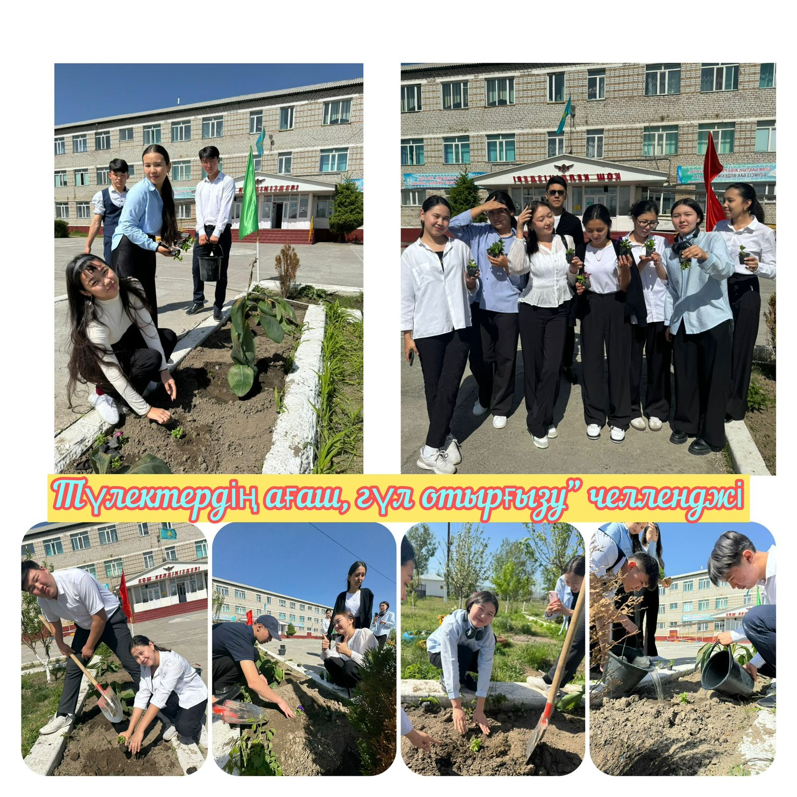 🌿 Мемлекет басшысының «Таза Қазақстан» экологиялық акциясын қолдау мақсатында «Түлектердің ағаш егу» челенджіге 2024 жылғы түлектеріміз өз үлестерін қосып, гимназияның ауласына гүл отырғызды.