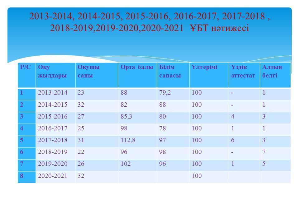 ҰБТ нәтижесі » «Жетісу облысы білім басқармасының Алакөл ауданы бойынша білім бөлімі» мемлекеттік мекемесінің «Үшарал қазақ гимназиясы мектеп жасына дейінгі шағын орталығы бар» коммуналдық мемлекеттік мекемесі