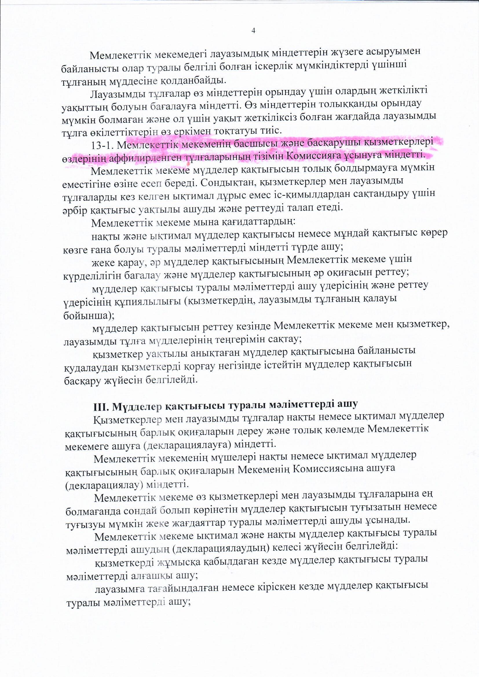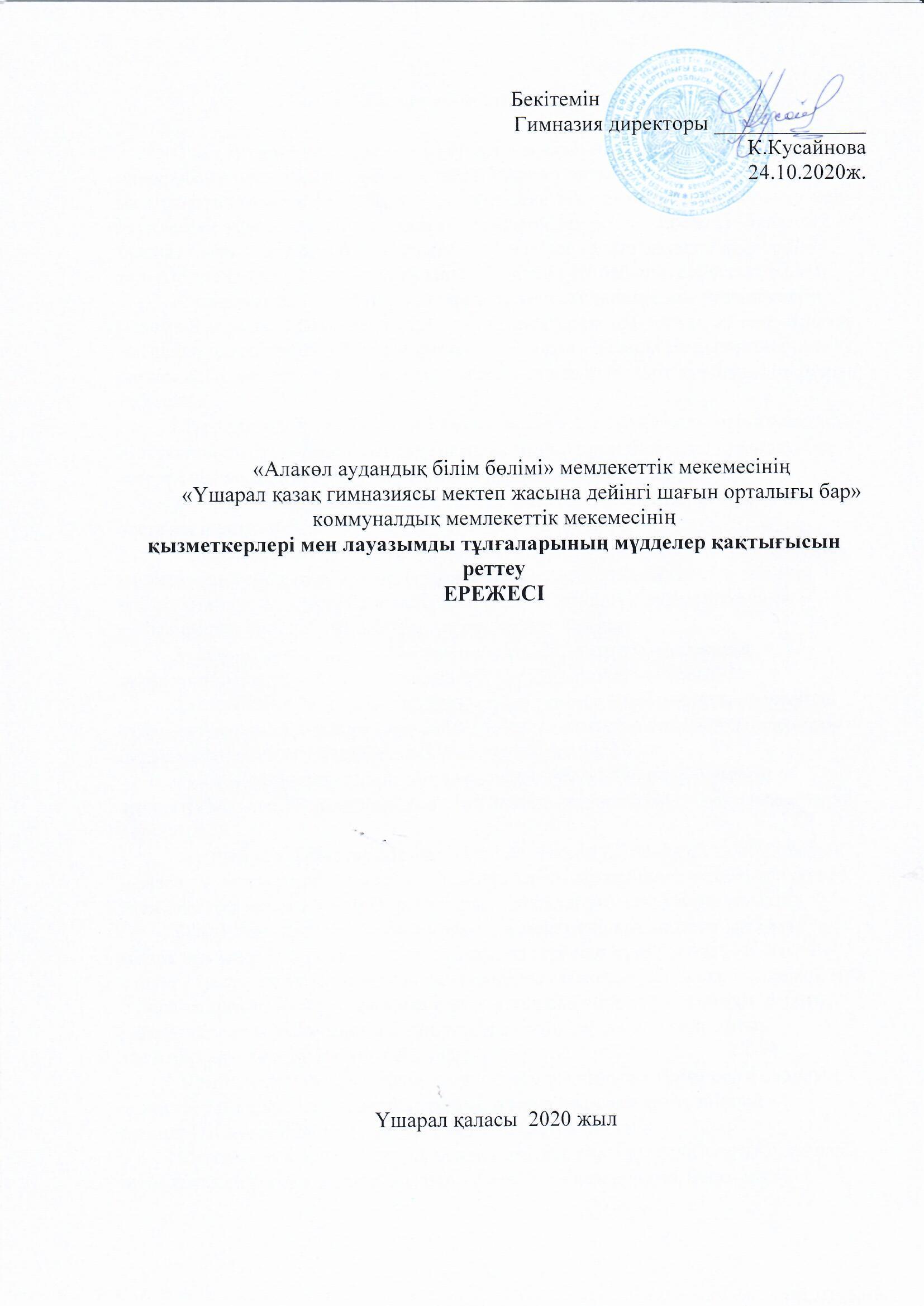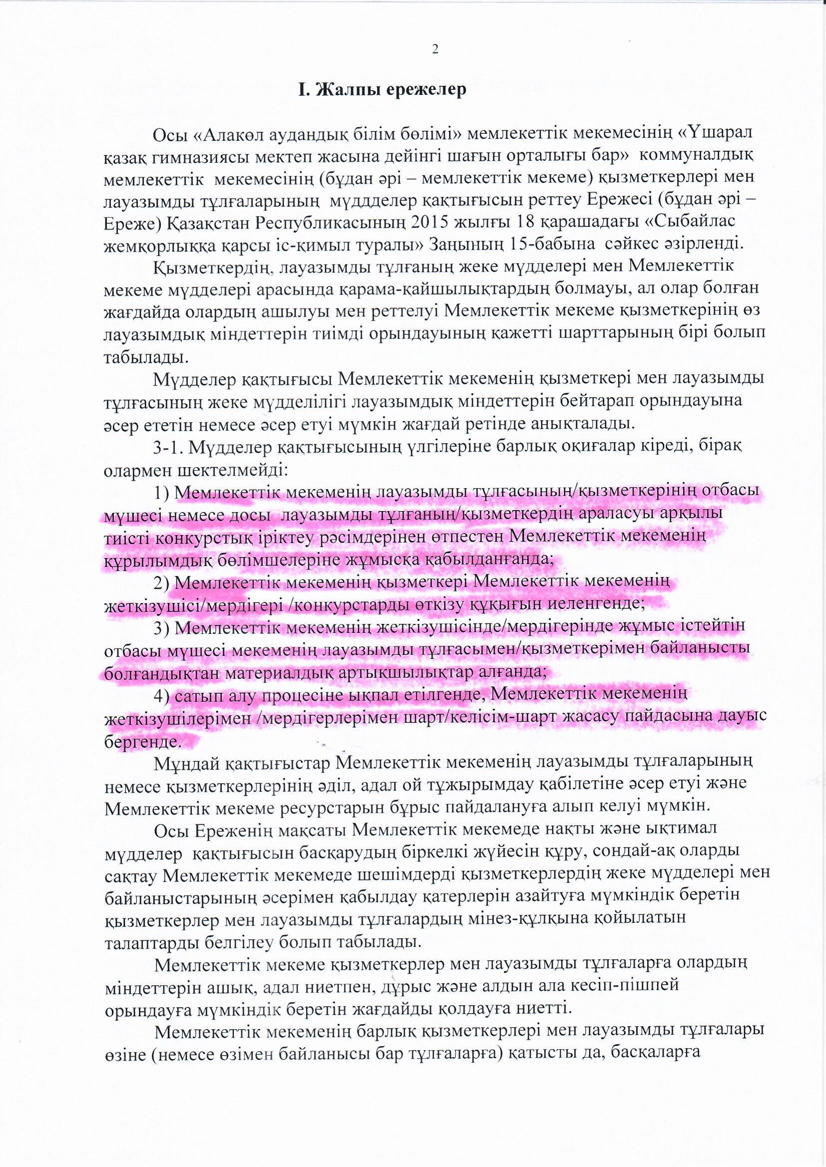 Мүдделер қақтығысын реттеу » «Жетісу облысы білім басқармасының Алакөл ауданы бойынша білім бөлімі» мемлекеттік мекемесінің «Үшарал қазақ гимназиясы мектеп жасына дейінгі шағын орталығы бар» коммуналдық мемлекеттік мекемесі