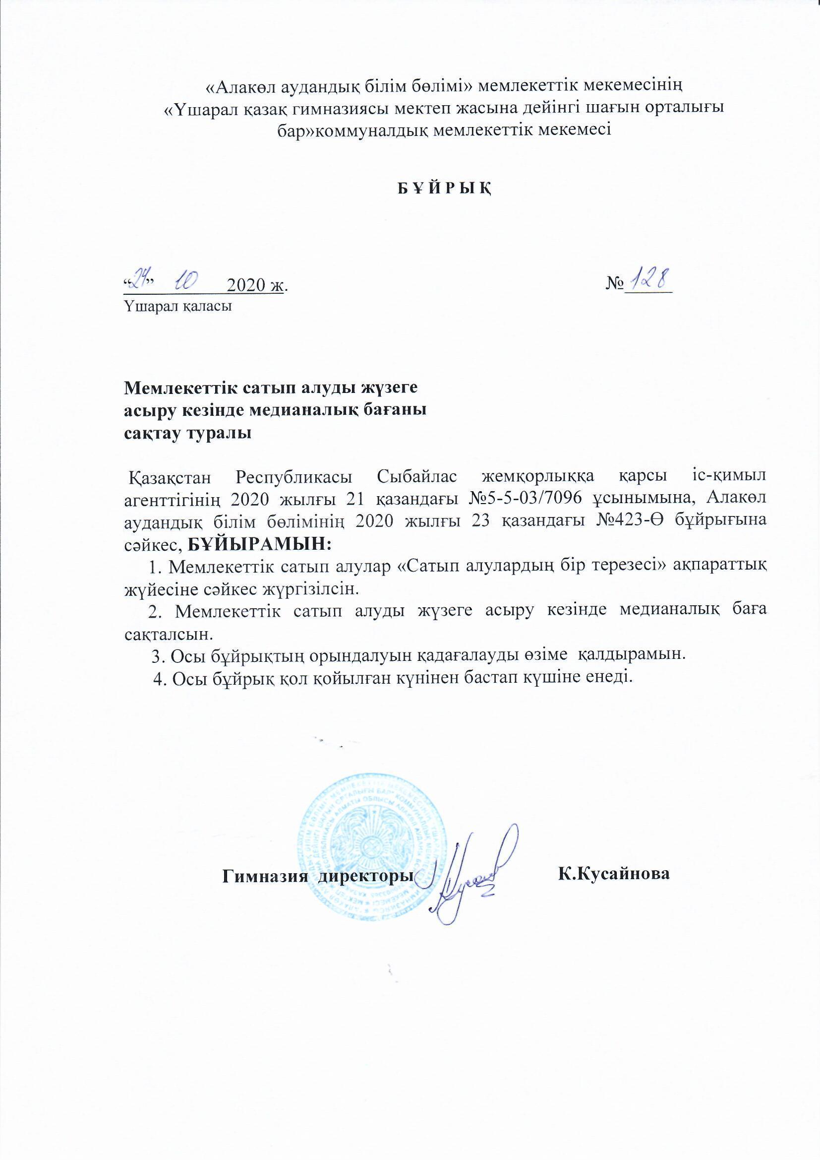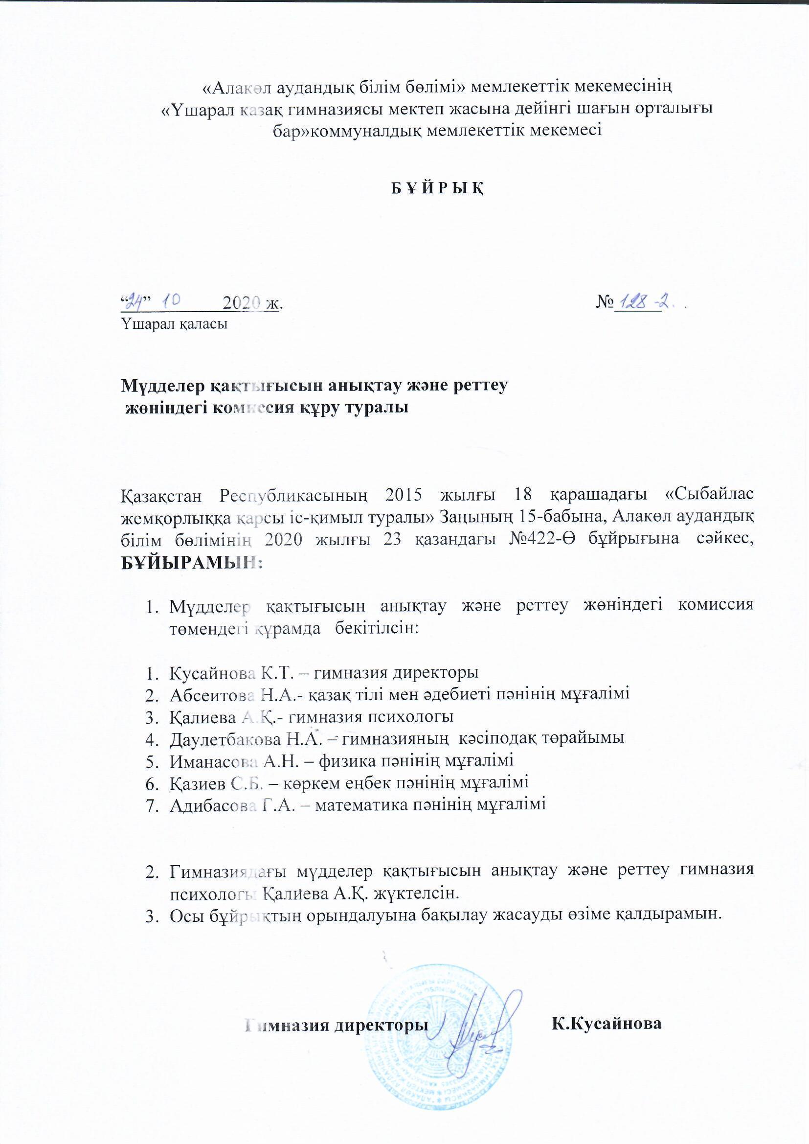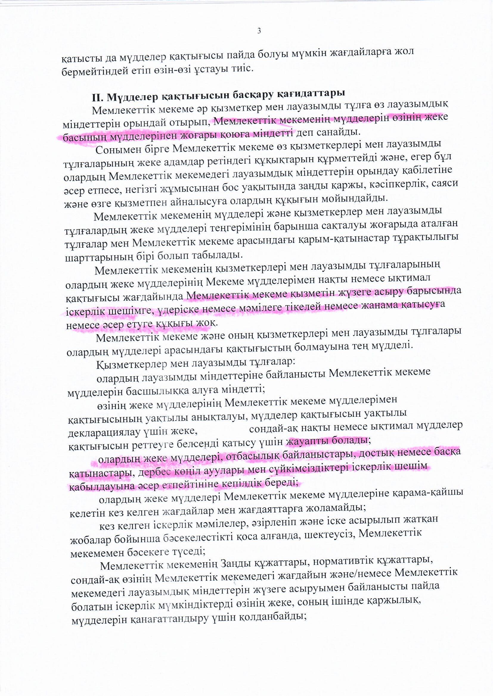Мүдделер қақтығысын реттеу » «Жетісу облысы білім басқармасының Алакөл ауданы бойынша білім бөлімі» мемлекеттік мекемесінің «Үшарал қазақ гимназиясы мектеп жасына дейінгі шағын орталығы бар» коммуналдық мемлекеттік мекемесі