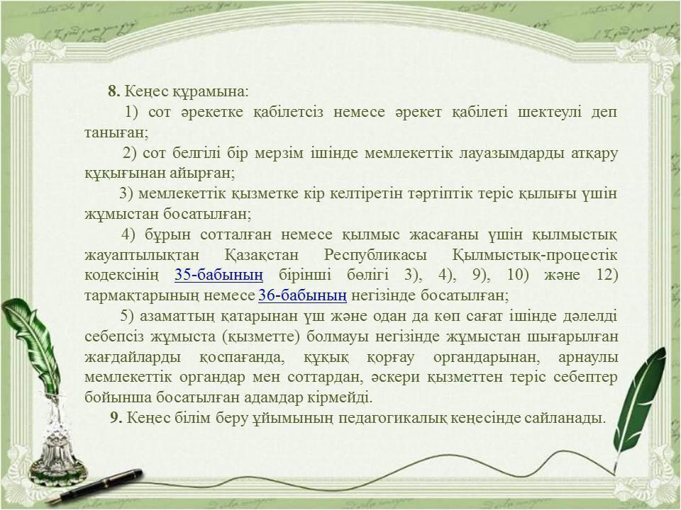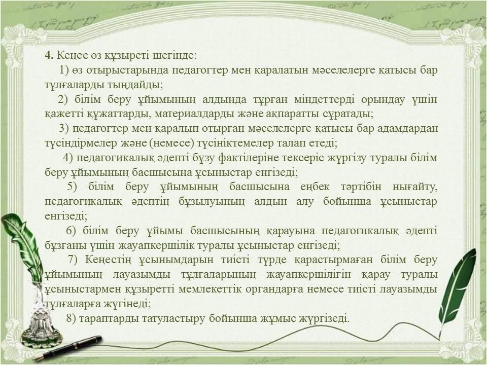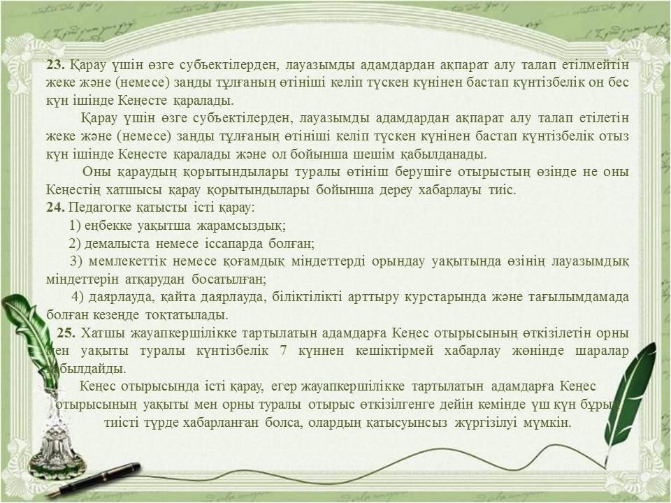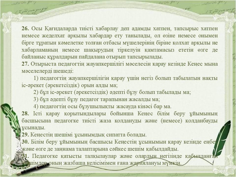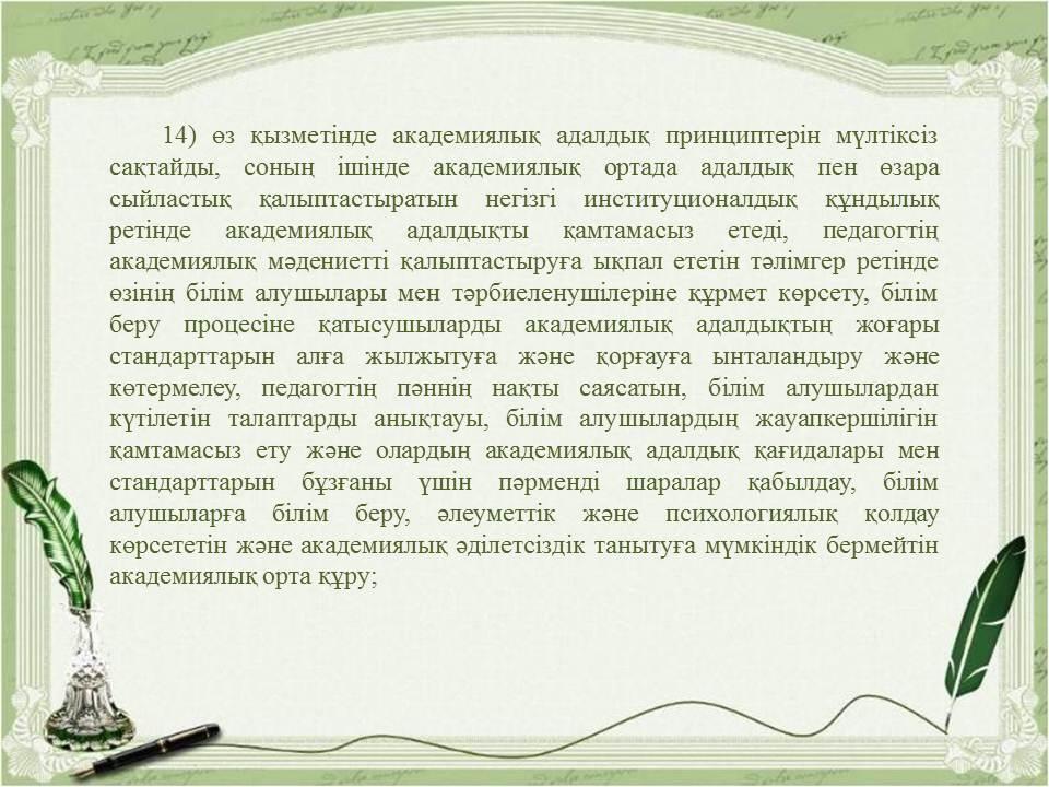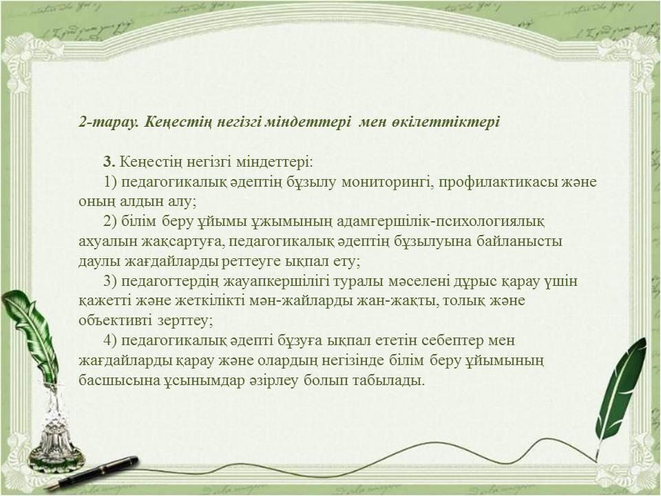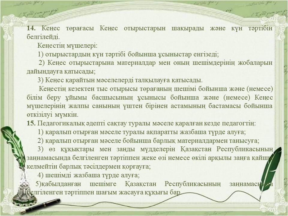 Педагогикалық әдептің кейбір мәселелері туралыҚазақстан Республикасы Бі » «Жетісу облысы білім басқармасының Алакөл ауданы бойынша білім бөлімі» мемлекеттік мекемесінің «Үшарал қазақ гимназиясы мектеп жасына дейінгі шағын орталығы бар» коммуналдық мемлекеттік мекемесі