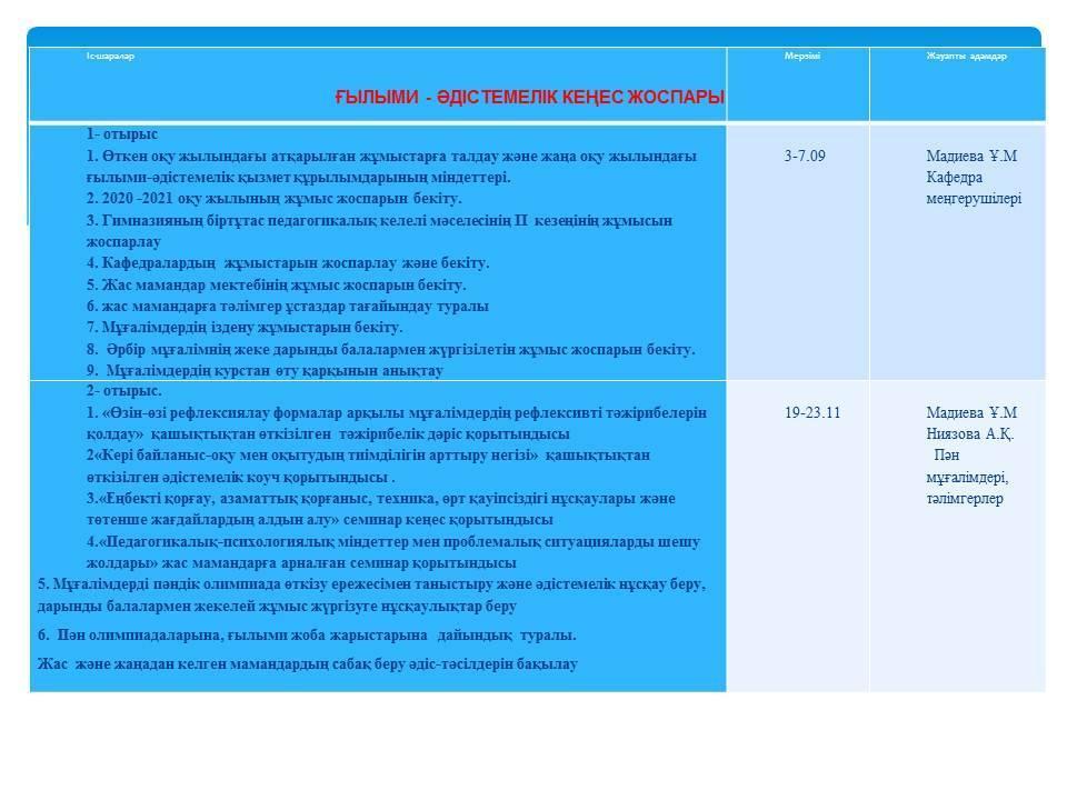 ҒЫЛЫМИ - ӘДIСТЕМЕЛIК КЕҢЕС ЖОСПАРЫ